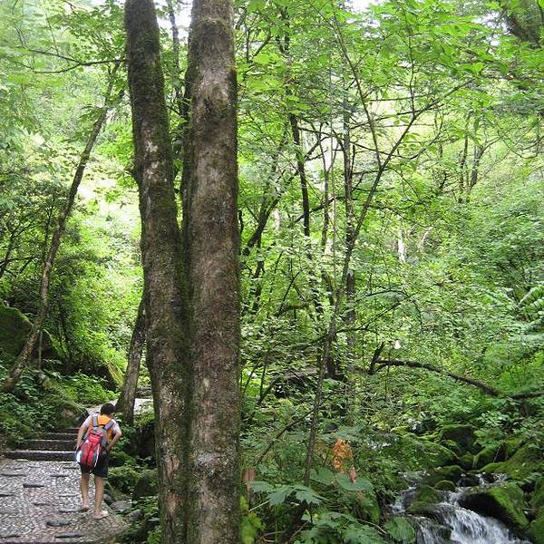 进山后,风景也是那么的美,眼睛都转不过来了。先去第一个景点喽。金猴岭一带是神农架不可多见的神秘而幽静的原始森林,这里原来是金丝猴生活的乐园,还经常有野猪、熊、金钱豹出没,是神农架原始森林保护较好的地方之一,也是神农架数十万亩原始森林的典型代表。古树上,石头上,到处布满了青苔,充满古老而神秘的森林味道。由于来这旅游的人太多,猴子早搬家到别的地方了!