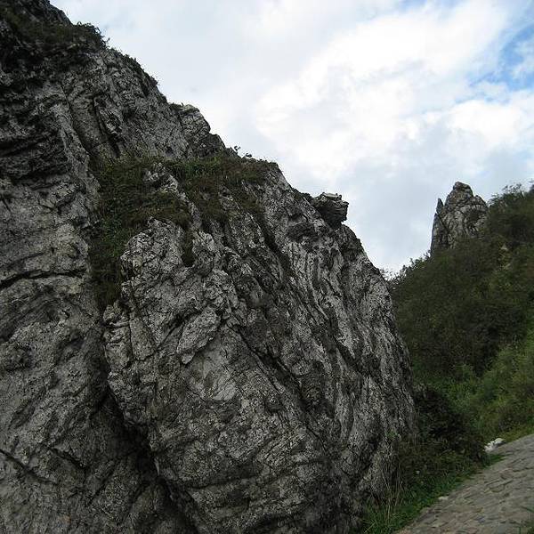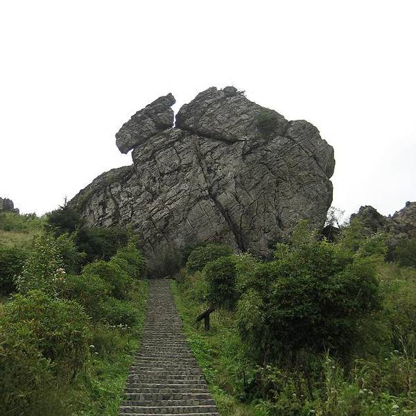 板壁岩位于神农架自然保护区内,离瞭望塔大约5公里,素以"野人"的出没地和石林倍受游人注目,但是这里真的有野人吗?板壁岩上下箭竹林漫山遍野,密不透风。快速去看看,看能找到野人不。连路都是石头铺设的哦。哦,还有这个?走路要小心点哦。珍稀的细叶黄杨,这棵也是长了好多年的了。这里游览大约1.5个小时句够了,在板壁岩这里,买了份煸土豆,5元/份,属于神农架的特产了,