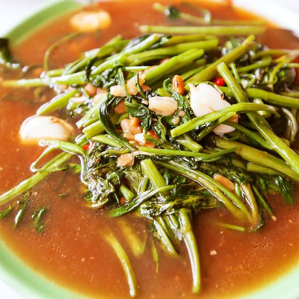 这个乌贼大蒜黑胡椒超级好吃,三下五除二就被我干掉了。而且味道炒的都很好吃。点了一份空心菜,味道还不错
