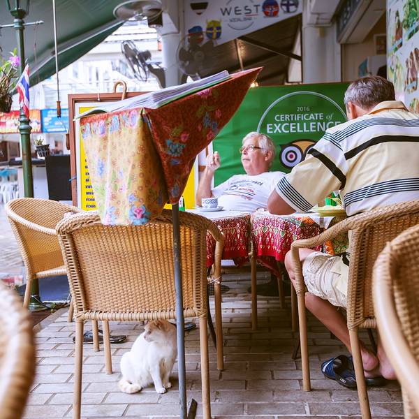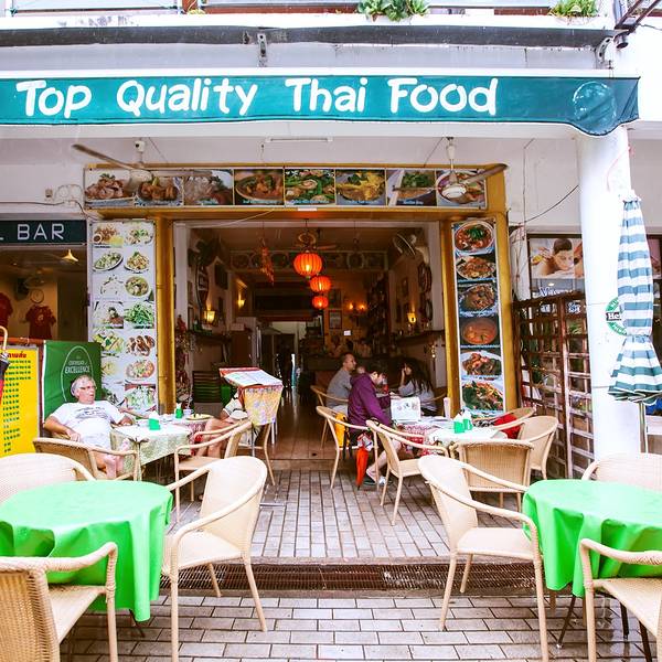 上午10:50,小心翼翼的登上陆地,11:35把我们送回芭东尼帕酒店。 在酒店洗个热水澡,换一身干爽的衣服。出去觅食,芭东附近有一家餐厅排名很好,于是谷歌导航一路找过去。餐厅位于芭东海岸线上的一家星巴克隔壁的胡同里。