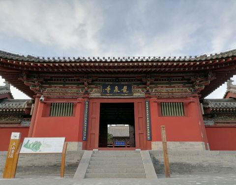 太山寺又名太山龙泉寺,相传北汉时有山民石敢当,以勇敢闻名,他居住的山也由此闻名于世。寺名取自“泰山石敢当”的谐音。 据载,太山龙泉寺原为道教昊天祠,始建于唐景云元年(710年),毁于金元战火,明洪武二十四年(1391年)重建时改为佛寺,并将附近的观音、童子等5寺并入。太山龙泉寺坐北朝南,殿阁楼台依山势而建,高低参差,层层铺开。山门之外是一大片平地,窑洞式的乐楼台基至今尚存。山门为悬山顶,额曰“山林古刹”,门檐之下的椽柱头上还保留着道家“八卦”痕迹。 寺左右两翼钟、鼓楼为砖木结构,钟楼上的铁钟系清乾隆十年(1745年)补铸,至今完好无损。大雄宝殿面宽五间,进深二间,共两层,底层砖砌窑洞,供奉观世音菩萨;上层砖木结构殿堂,原奉佛祖释迦牟尼。太山龙泉寺后院并列着3座八角攒尖顶建筑,分别是观音、文殊、普贤3殿。