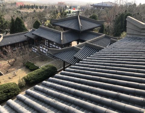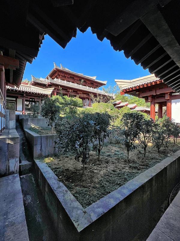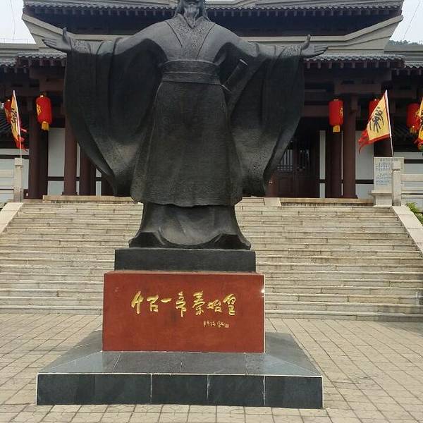 帝王宫秦风院落壮美霸气,馆前有千古一帝秦始皇雕塑,登高望远背山面海