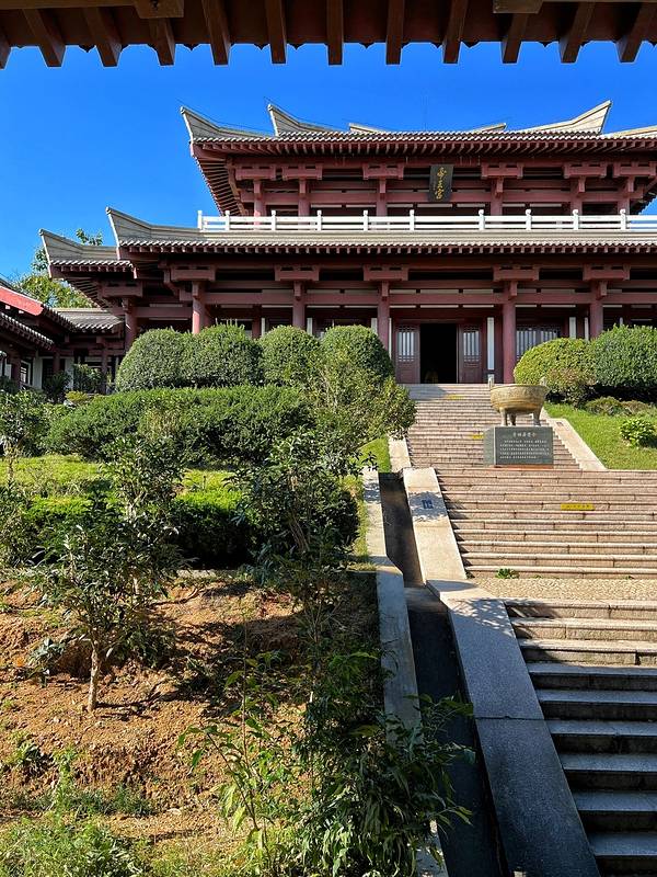 继续上山,经过一片翠绿的竹林,空气清新,鸟儿鸣叫,心情舒畅。山上有一座徐福殿,是特意纪念徐福而建造的,据说徐福从这里东渡去了日本。