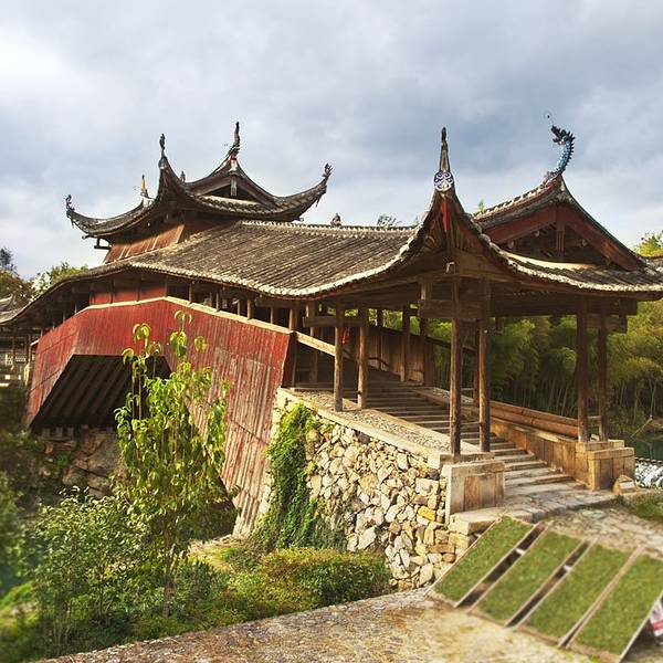 溪东桥位于温州,系木拱廊桥结构,位于泗溪镇白粉墙村,因为地处东溪的上游,当地人又称“上桥”。溪东桥始建于明隆庆四年,桥长42米,廊屋高10米,桥台用花岗岩块石磊筑于两岸山崖之上,是泰顺造型最佳的木拱廊...