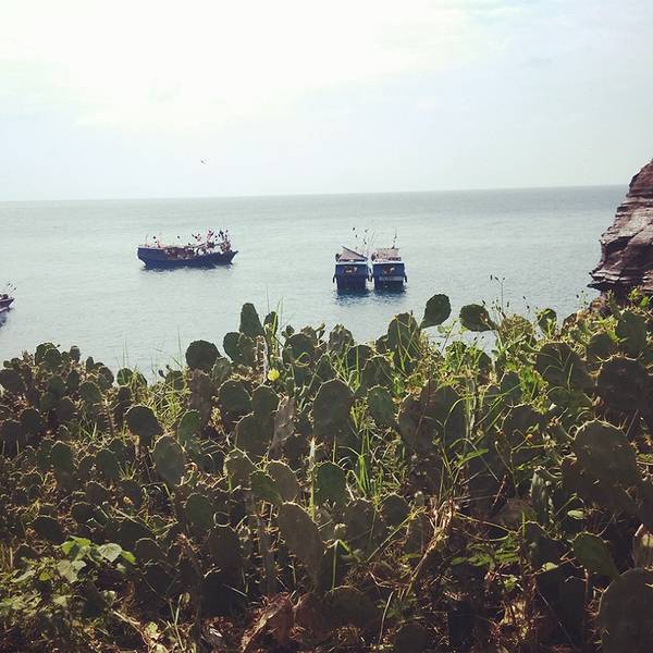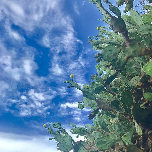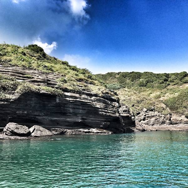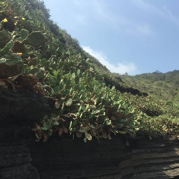 坐在快艇上的我们随一波波海浪轻轻跳跃、时而腾空。望着茫茫大海,仿佛这艘快艇载着我们开往另一个时空。站在风口浪尖的小杨,哈哈 一个人是为我们挡不了风浪滴,坐后排VIP位置的我只能为大家留下背影。看这飞舞的头发就知道此刻的风大不大,却仍不忘在呼啸的海风中狂笑!热爱大海的我们都很享受这种刺激,好像也喜欢偶尔沾湿衣服的浪花。一个浪头会引得一阵尖叫,还是拿出手机拍上几张,想留住这刺激又美好的片刻!旅途中的人都特别容易快乐,而这种快乐更具有感染力!一路都在伸长脖子望着前方,我们终于靠近斜阳岛的边缘。我们离斜阳岛越来越近,天空也越来越晴朗。这里的海水深幽碧绿,岸边皆是礁石悬崖,奇形怪状的火山岩更是赋予了这个小岛神秘的气息,诠释着她的孤傲与美丽。由于有一些风浪,我们绕岛徘徊下才找了处岸边停下。这里不是码头 是一个小小的港湾,一片平坦的礁石,有一些清澈的海蚀坑,这是我们海钓的好地方呀!岸边的岩石上,这些仙人掌肆意生长,长在崖边、朝着蓝蓝的天空蔓延去,在用一丝倔强守护着这座孤岛。这些岩石裸露在波光粼粼的海边,漏出好看的纹理,更像是岁月赐给这里的美貌! 展开
