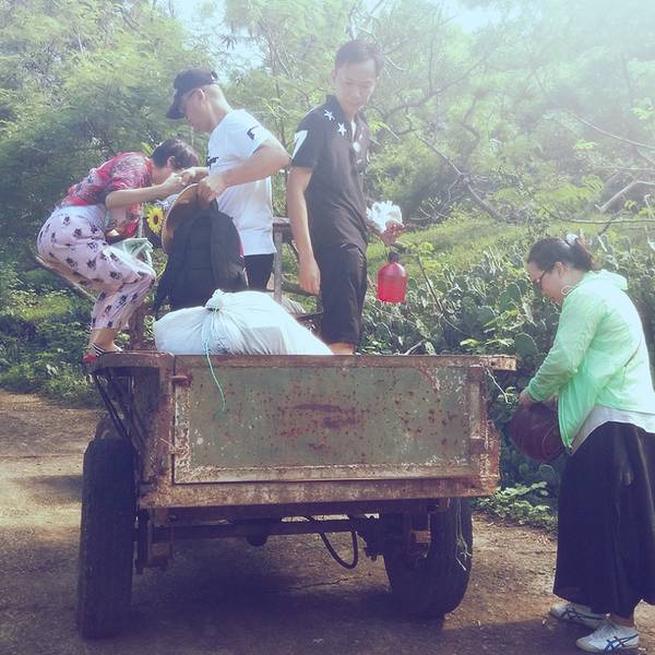 上岛后需要乘坐 手扶拖拉机进村 (这也是我第一次坐拖拉机啊)
