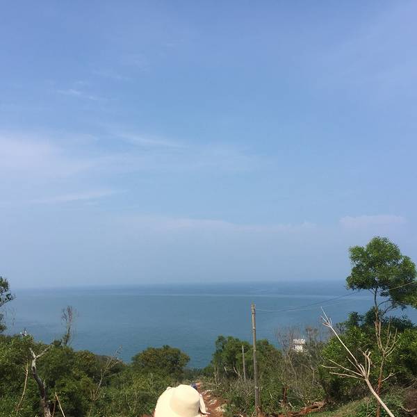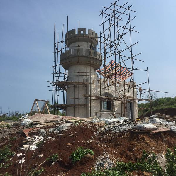 而我,刚好见证这些,还是沿着村中那条唯一的水泥路走,放眼望去,整个大海在你眼前!左边的相思树大家看到没有?相思树的花朵!我运气很好,来的这天,相思树开得正好!这是岛上正在建的一座塔,以后它有可能是斜阳岛的一个新的地标。