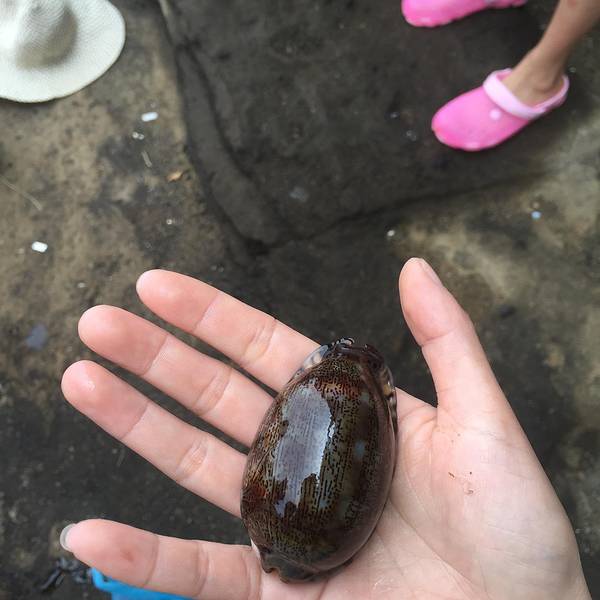 在斜阳岛,漫山遍野,都是这种长满小刺的美丽的生物。这是我在浮潜那里拍的,你可以看到,海水真的超级清澈的!仔细看,沿着边缘生长的这些生物,有没有很可爱!我也真的很佩服跟我们一起来的重庆的一对情侣,浮潜居然还抓到这些...这个也是那对情侣捡的,叫做猪仔螺。据说是因为背面长得像猪仔的原因...第二站,我们去到了斜阳岛上的村子,斜阳村。