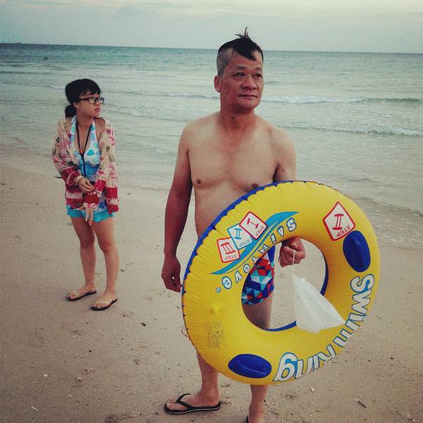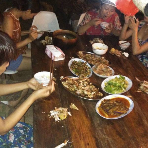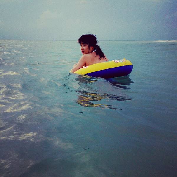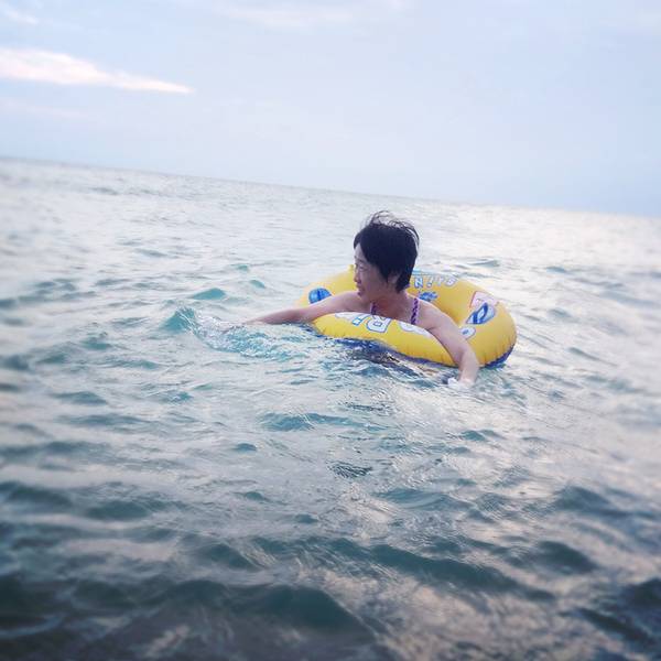 今天的浪比较平 可以欢快的游了刚开始麻麻还比较胆小 需要游泳圈老妈是越玩越开心 越游越大胆了 都不用泳圈啦我就不行了 是个旱鸭子 全程泳圈不离身努力的游 还是个旱鸭子啊不过还是很欢快滴今天是晒得那个黑啊把头发扎起来 瞬间嫩8岁啊老爹这发型忒帅了 哈晚餐是与大家拼餐的,味道还是一如既往滴好啊!晚上客栈的四川小帅哥带我们去抓螃蟹了