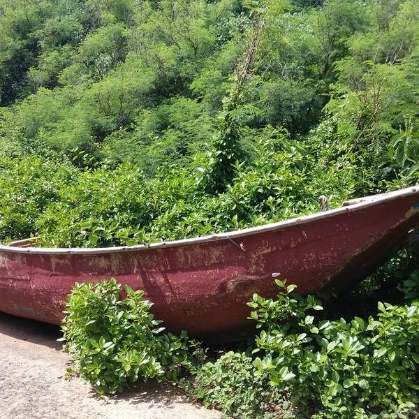 小杨岛主说了 岛上水果随便免费吃岛上还有一片小草原林中小道路边的小木船这是一颗很大的榕树船里有宝贝!准备返程了火山石上都是仙人掌