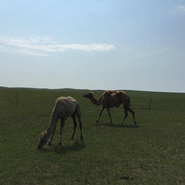 第一天的天气不是很好,天灰蒙蒙的,有点像帝都。去金帐汗时路边遇见的骆驼第一天的天气不是很好,天灰蒙蒙的,有点像帝都。路上看到不少巨大的圆形的平平的土堆,我们很好奇地问大白师傅那是什么,大白师傅说那是采矿留下的痕迹。
