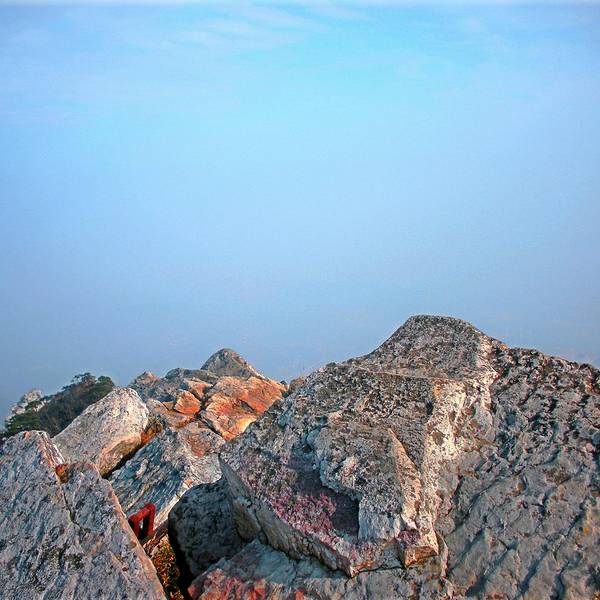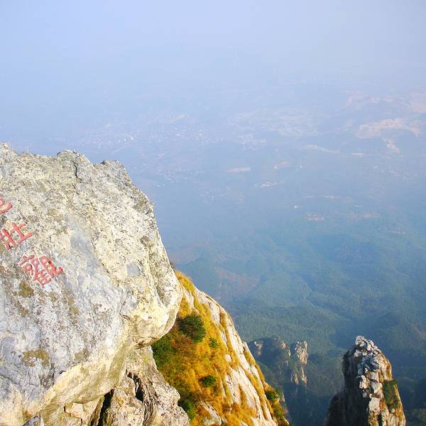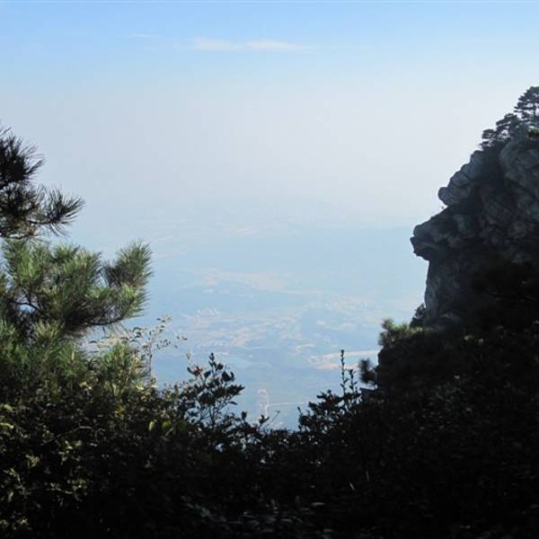 第一峰至第四峰基本同处一座山上,略微的高低起伏,第五峰却是在山谷的对面——眼看近在咫尺,却要下到山地再走上最高处。无限风光在险峰,说的就是这样,没有任何障碍物遮挡,鄱阳湖就在云雾缭绕之中,零星散布的村落、房子,整个浔阳尽收眼底。这里,必须来一个高声呐喊—— 展开