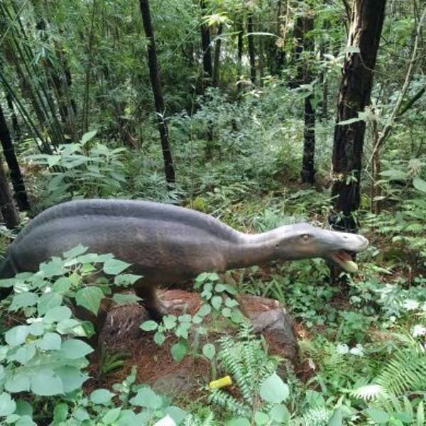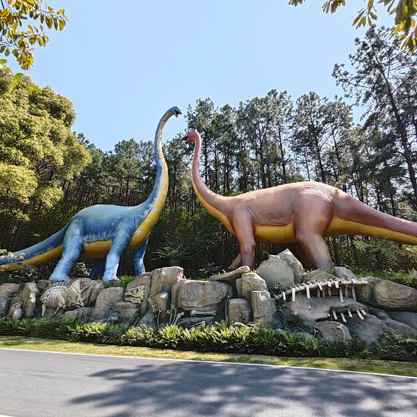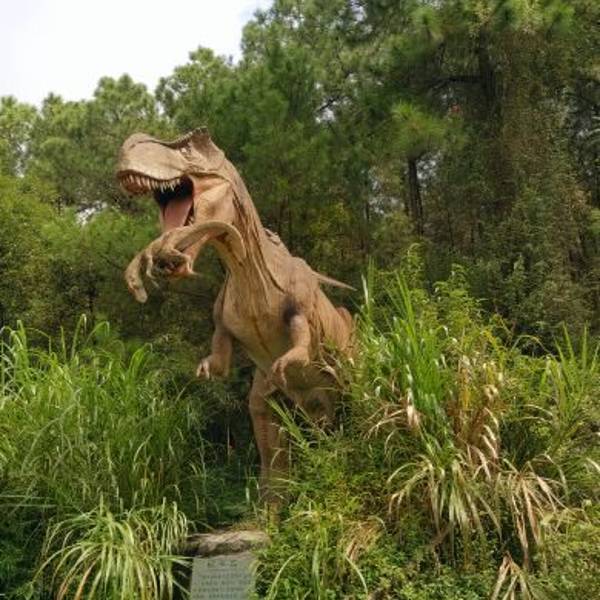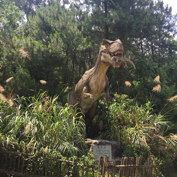 恐龙谷依山而建,沿着木栈道一路上去可以看到恐龙模型,出口在另一边不需要走回头路,虽然恐龙是假的,但是因为在林中,氛围感很足。出口对面是恐龙乐园,里面有免费的波波池。上方是很大的舞台阶梯座位,面对着湖中央的舞台,应该是特殊时节会有灯光秀吧