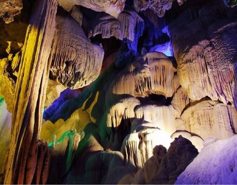 唯一招牌景点蟠龙洞就在山里,钟乳石的造型非常多彩,著名的石花石非常漂亮