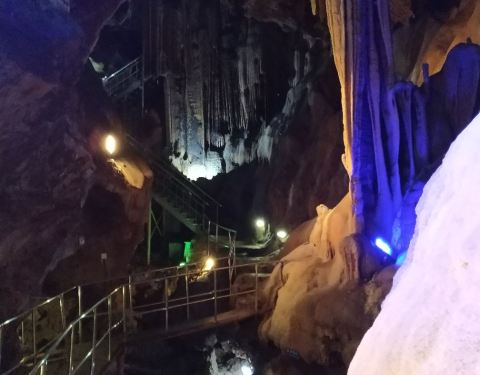 我们从中山过来的,路程其实也不算太远,三个小时就到了,门票周一到周五便宜一点,35元,周六日要40。去到刚好大雷雨,不能进去,好在等了三四十分钟后就可以进去了,洞不算大,但它有它的特色之处,有石头开花,有蚊帐布一样的钟乳石,呵呵,还好吧!