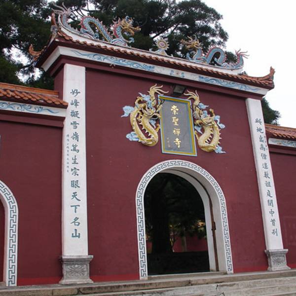 又名崇圣寺,全名雪峰崇圣禅寺,位于闽侯县西北雪峰凤凰山南麓。唐咸通十一年(870)建,现存殿宇多为光绪年间重修。寺内主要建筑是山门、法堂、大雄宝殿、斋堂。大雄宝殿内有来自缅甸的三世如来玉佛。十八罗汉姿态各异,栩栩如生。山门外有古树四株,相传大的两株系闽王王审知和唐代僧人义存手植,有千年历史;小的两株为明代寺僧所植,距今亦五、六百年。寺内藏有印度梵文贝叶经和佛祖像,颇为珍贵。