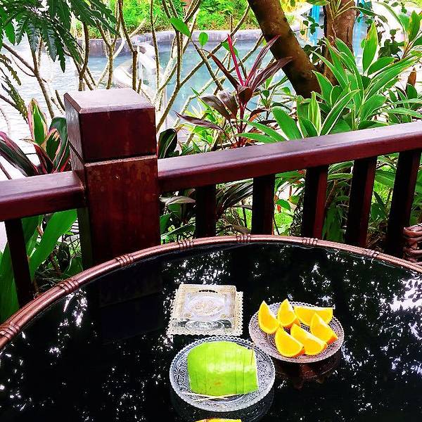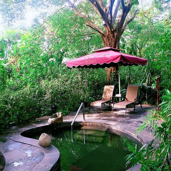 环境好私密,一池一景,设计用心,周围树木高大,密实,有些像桃花岛迷宫,不好找老婆孩子,还有云南的民族特色音乐,一家三口泡了挺长时间,泡热后在藤椅上休息听歌,放了一首远走高飞,好享受好惬意,也许是十...
