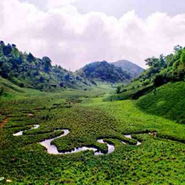 神河源风景区,位于陕西岚皋县交界处的大巴山神田主脊的北坡。总面积约8000公顷, 距岚皋县城47公里,最高海拔2470米,神河源是神仙河的源头。1999年6月1日开园的神河源省级森林公园,分为神田草原、巴山秋池、朝阳洞三个旅游区,它风景优美如诗如画,融山、水、林、泉、洞于一体,集雄、奇、秀、阔、幽、险于一身。不到武当可以看到金顶雄姿,不到西双版纳可看到原始密林,不到哈尔滨可以看到婀娜多姿的北国雪景,不到新疆可以看起伏不平的辽阔草原。