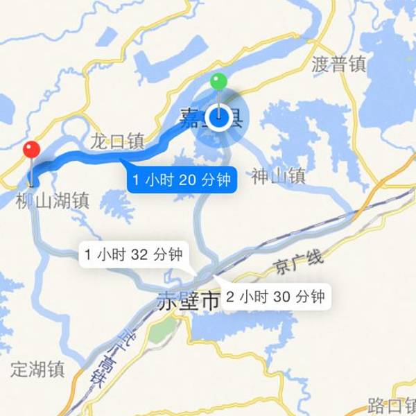 1.S107咸宁方向→赤壁→嘉鱼(过赤壁约30公里)→嘉鱼山湖温泉