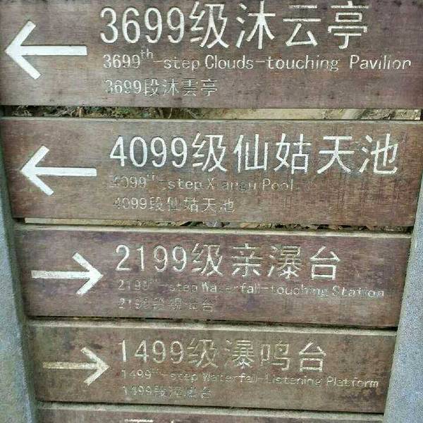 3,4099以后就没有必要继续走了,没有景点,只有石阶,可以站高点望望景色,其它就是树木和阶梯,没有必要走到9999,如果体力过剩,好奇心劲爆,可以去瞧一瞧,绝对后悔。