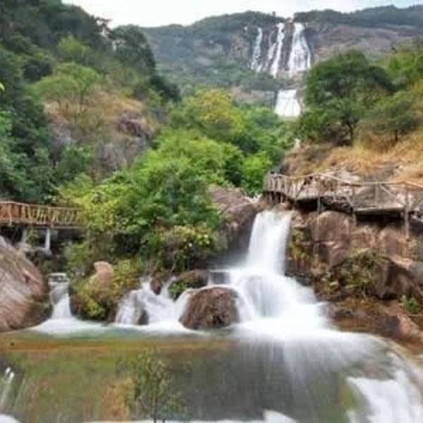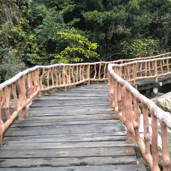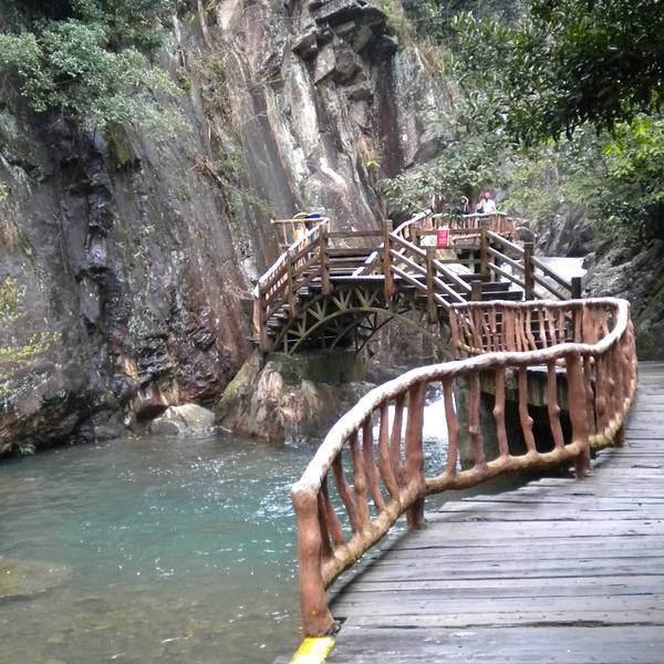 海船木栈道与登山步径起步点相接,通至1499级瀑鸣台。栈道亲水而建,沿途并有多个凉亭和观景台。漫步其中,可以一边观瀑戏水,一边呼吸清新空气。行至1499级,即可抵达第一级零距离触瀑点——瀑鸣台,感受瀑布奔流直下的磅礴气势。之后沿石阶而下,可达899级观光车站,选择以车代步,逍遥到底。