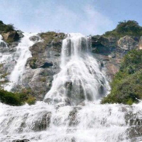 体能充沛者当然更喜欢知难而上。行至3299级处,即可抵达第三级零距离接触瀑布点—沐瀑台。从山顶飞驰而下的瀑布水花,沐浴身心。落差高达428.5米的瀑布近在眼前。之后轻松穿过“神仙沟”,即可抵达4099级处的瀑布源头——仙姑天池。