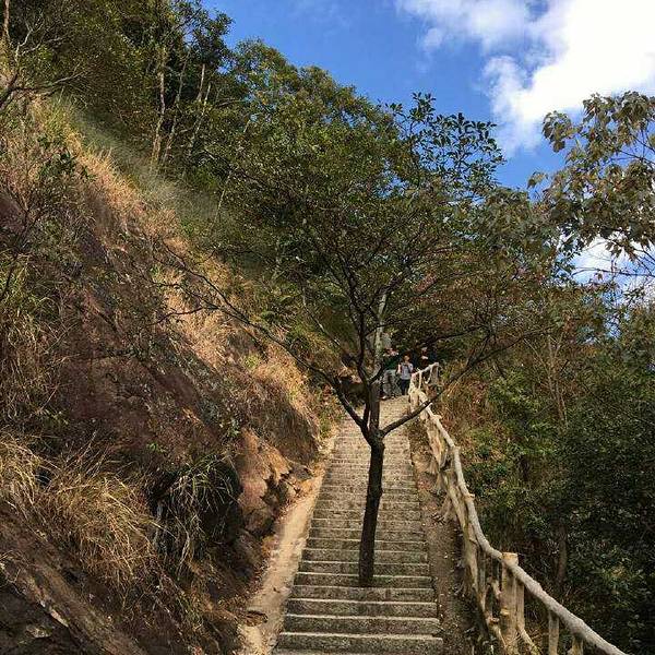 4,在4099级以下都有多处观景台什么的可以休息一下看看美景,在上面往下看,映着阳光的小池塘犹如仙池般美丽,在4099以下每一百级就有标示一下,往上就没有了,在看不见尽头的路,我朋友差点就要放弃了,是我要坚持下来的,但是上去之后觉得挺坑的,上着上着就变成下山的感觉,然后就有个牌写着终点,之后要往原路返回,也可以坐车30块钱一个人,够人才开车的。上山的朋友,到了天南第一梯的时候往左边走,那边的风景更秀丽。有卖土特产,不懂的小心被骗,我就是被骗了,增城菜心可以试一下,还挺不错的。