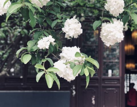 现在绣球花开得正好!公园很幽静。