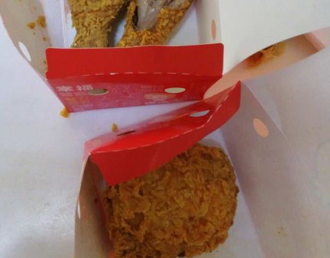 不是五块脆皮腿,只装了三个,其它两块是其它的。