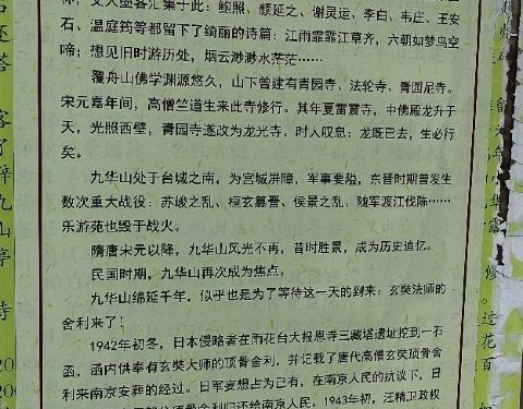 公园内建有玄奘寺、三藏塔,塔内莲花座下藏玄奘法师顶骨舍利此九华山虽非彼九华山,但紫金山脚下,玄武湖畔,依然古朴典雅。公园内建有玄奘寺、三藏塔,塔内莲花座下藏玄奘法师顶骨舍利。