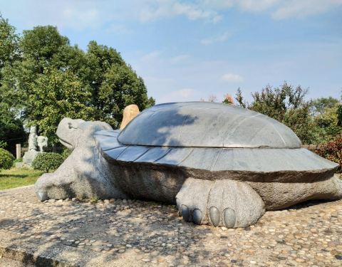 ...,玄奘的灵骨葬在山上的三藏塔,两个观景台视野很好,可以看见古明城墙和玄武湖,公园里还有一只巨龟