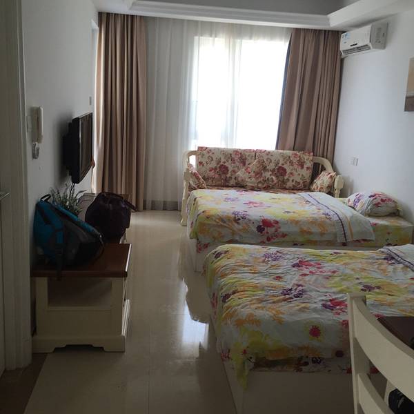 这是我们住的房间三床房,环境还是不错的,。主要是缺什么一打电话就有人给我们送来,晚上吃宵夜还有外卖送