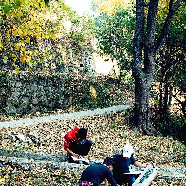 一些艺术系的学生,认真的在写生,丝毫没有因为我们的到来受到干扰,或许他们已经完成沉浸在自己的世界里了。除了写生的学生,这里也是摄影爱好者的天堂。