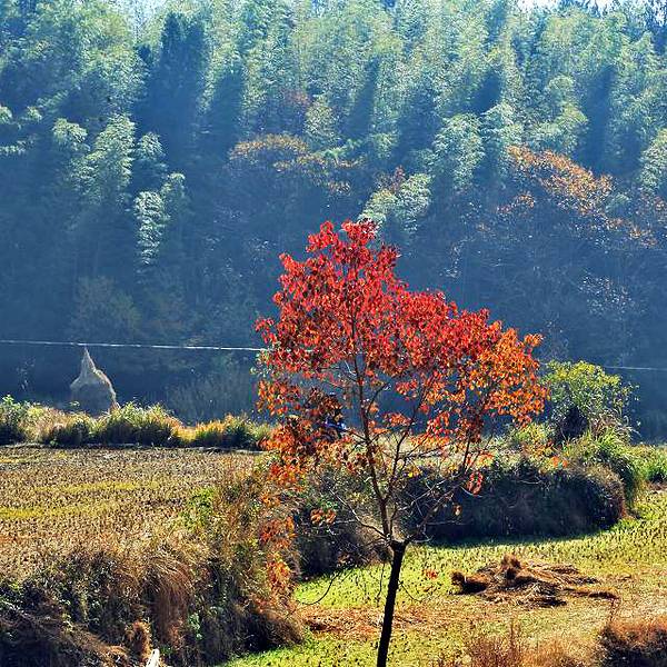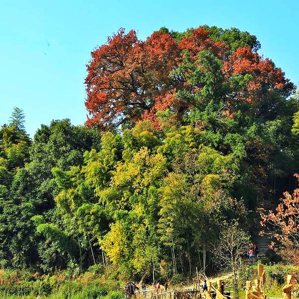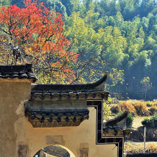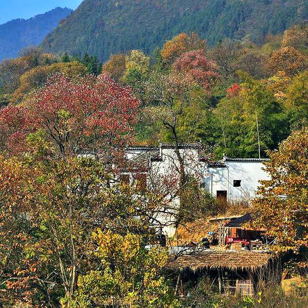 以秋色著称的徽派小村,是摄影胜地,11月下旬可赏红叶、黄叶。