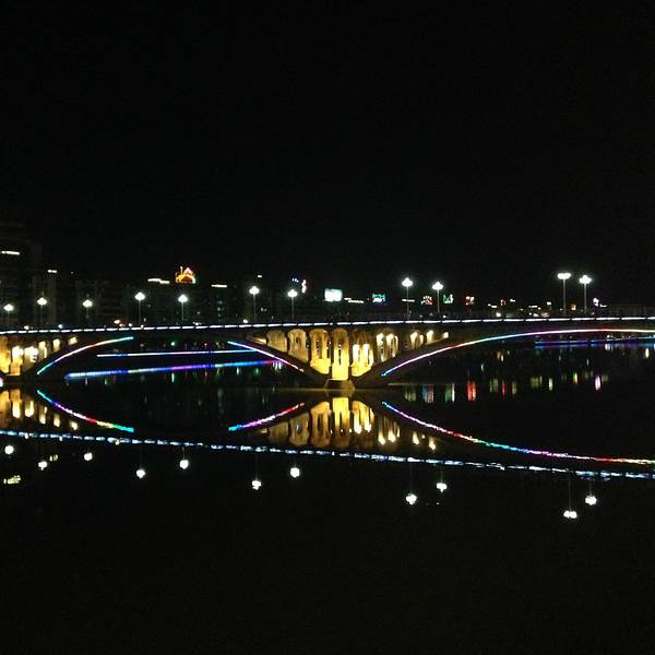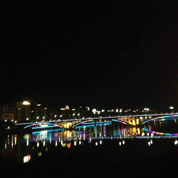 ...往,夜景非常的迷人,风采桥倒影犹如天梯,星光点点,旁边就是一条河,走在河边看景点非常的美丽,3