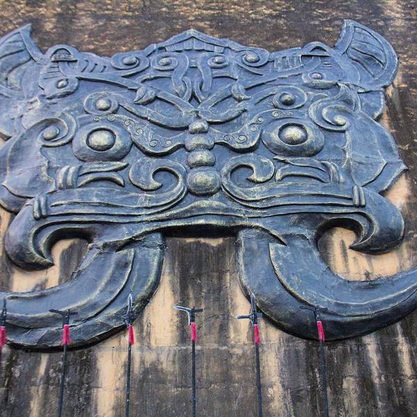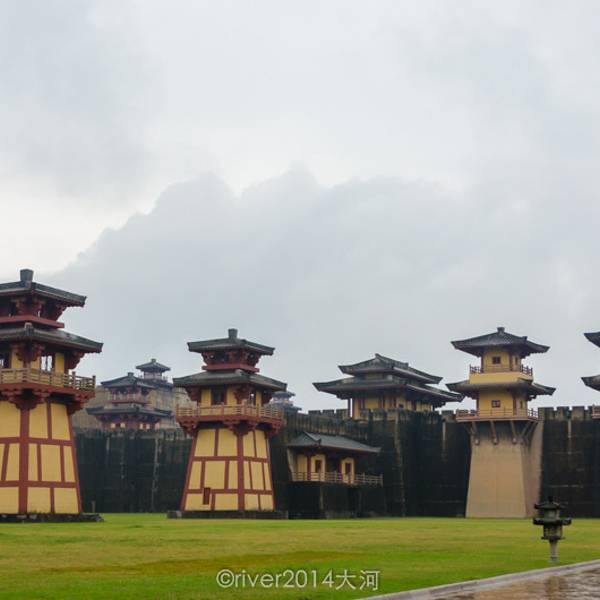 从进入秦王宫的大门开始,就感觉到这里浓厚的秦汉建筑风格,整个景区的面积还是比较大的,四周有高大的城墙围了起来,游客只能从正门的城门出入景区。城门高大而厚重,其实进入景区的城门并不止一道,古时的城门设计也很科学。城墙四周的角楼和箭楼非常雄伟气派,特别是在细雨绵绵天空阴沉的天气里,更有一种悲凉的气氛。