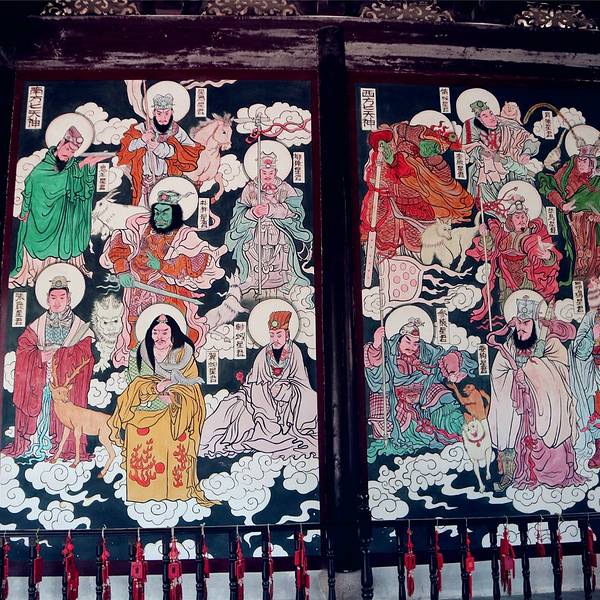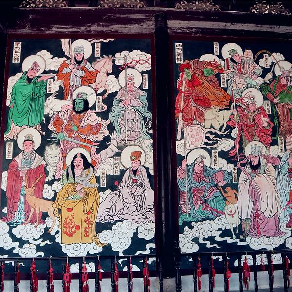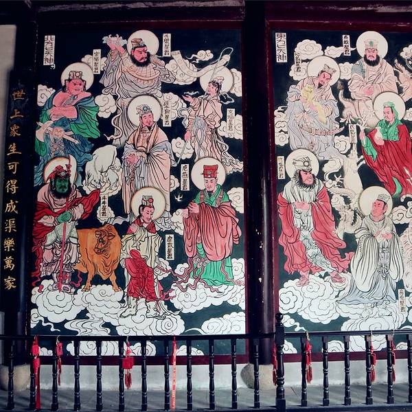 历史变迁,广惠宫历经沧桑,曾三毁三建,我们现在所看到的广惠宫是2003年上半年重建,不过也部分展现了历史上广惠宫的原貌。广惠宫的主体是主体是祠山大帝行宫。宫殿前人们美好的祈福心愿随风飘扬。这里的游客不算太多,相对古镇其他景点,这里显得尤为安静,亲朋好友,携家带口,周末一起来此散心,看看鱼,玩玩水,幸福不过如此。道观里的壁画:广惠宫门口有一片相对比较开阔的场地,恰逢一群姑娘着古装进行表演,曼妙的舞姿让人记忆深刻。 展开