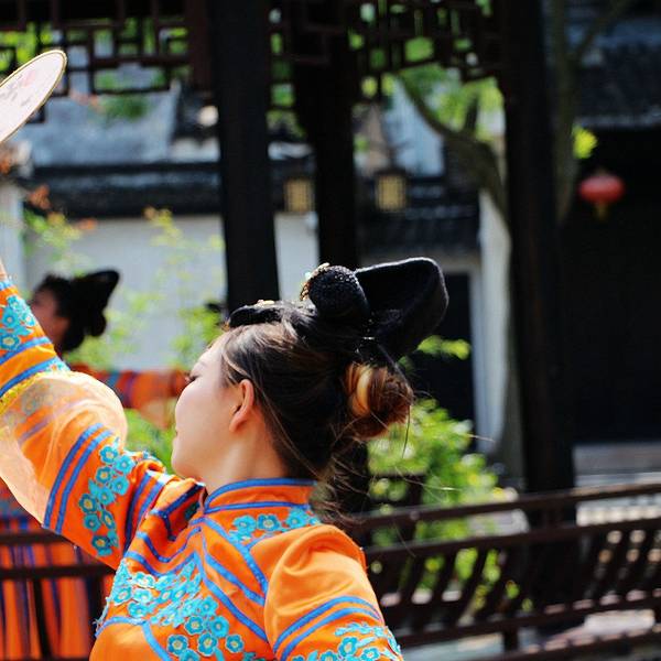 这样一座历史悠久的宫殿,饱经沧桑,经历了三毁三建。好在后人对文物保护的重视,今日我们才能在南浔古镇见到这样一座气势恢宏的庙宇。巧合地遇上了一群姑娘在广惠宫门前表演,曼妙优美 展开