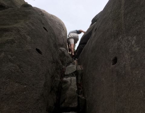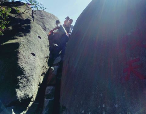 ...还是坐缆车上山,沿路没有什么风景,当然整个景区都没有什么风景,唯一亮点就是一线天,稍微有点刺激