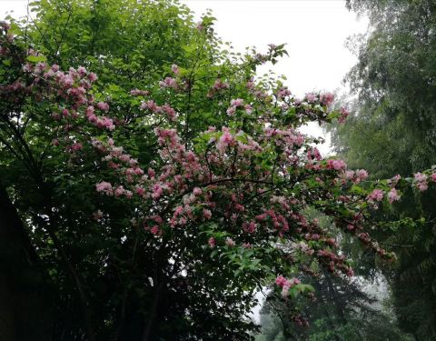 早上起来,风和日丽,沿着新路散散步,呼吸新鲜的空气,果然山上山下大不同