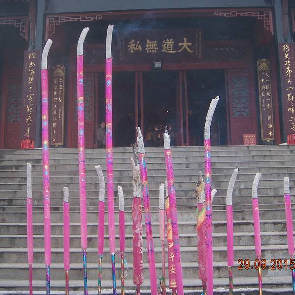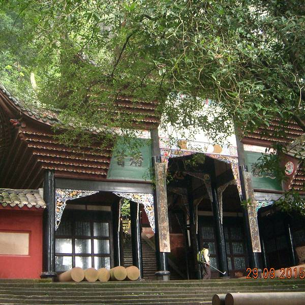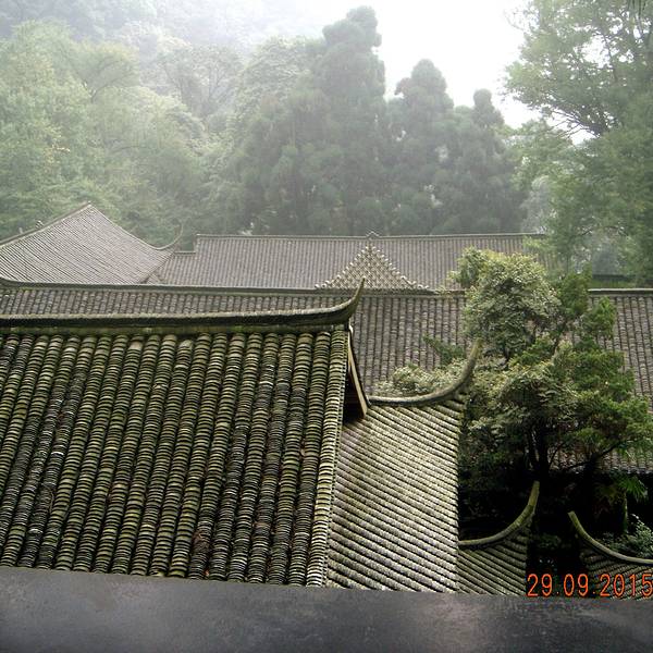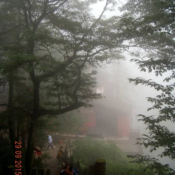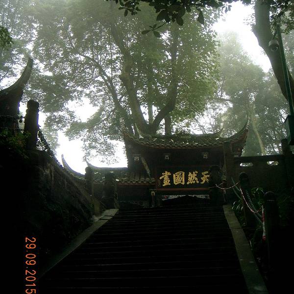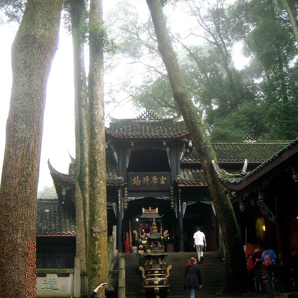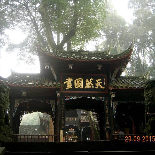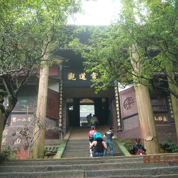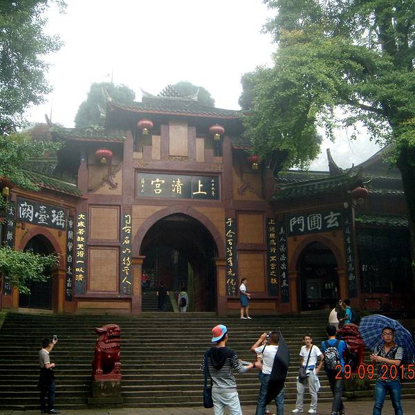 我在13年11月来过一次青城山,因为武侠小说中的描述,也想一探青城山的仙气,感觉秋天的上清宫最美,被金色树叶的银杏树装扮,着实漂亮、迷人;后来又在15年国庆节前夕再到青城山,还想再次体验不同气候中的美景。青城山在夏季的天气变化果然如同小孩的脸,无法算出确切的气候,在山门的时候还是阴天,步行到全真观的时候,太阳公公就弹出了头,感觉有点热,可是,到达上清宫的时候,宫观已被薄雾笼罩了,到了山顶的老君阁就啥也看不到,就是白茫茫一片,下山途中就是小雨和大雨相伴。