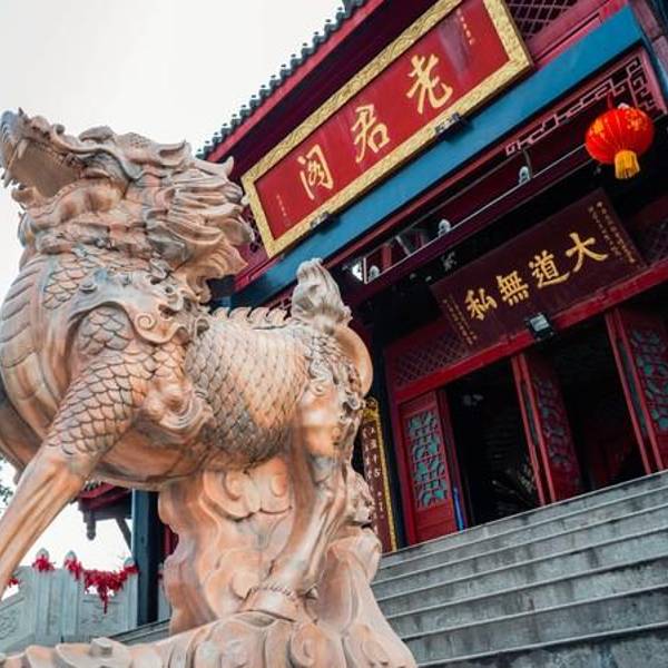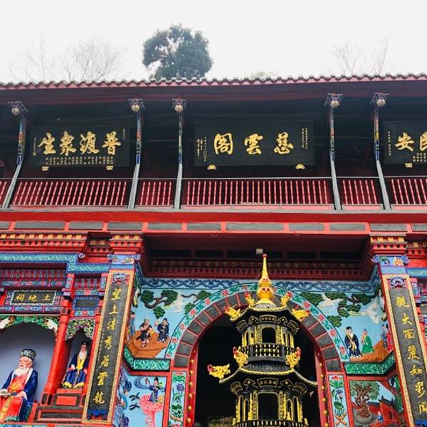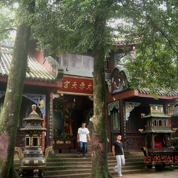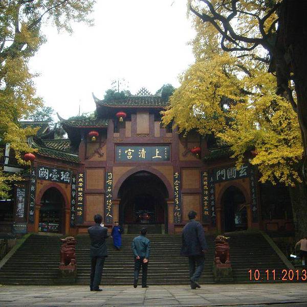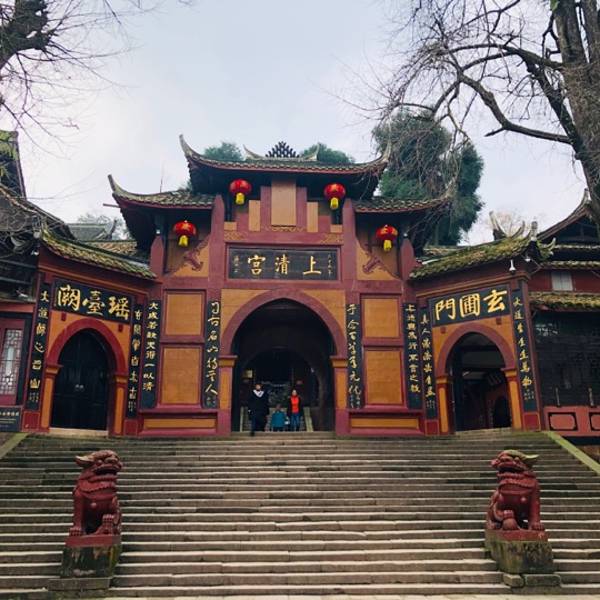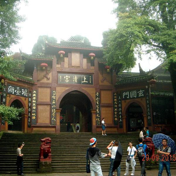上清宫在青城山各宫观中是最具规模的一座宫观,也是建造地点最高的宫观,因为位于青城山彭祖峰东坡上,地处阳面,也是观日出的好地方。上清宫始建于晋代,后经历代兴废后,如今的宫观是在清代所建,为三进院落式的中式道教宫观,宫观内目前保留有老君殿、三清殿、道德经堂、文武殿和玉皇殿五座大殿,还有好些文物古迹,如麻姑池、鸳鸯井等,更有张大千的好些字画,最最珍贵的是观内珍藏着楠木刻板的《道德经》和《阴符经》全文,是道家至宝。整个上清宫如果认真观赏,可游玩1~2小时呢。