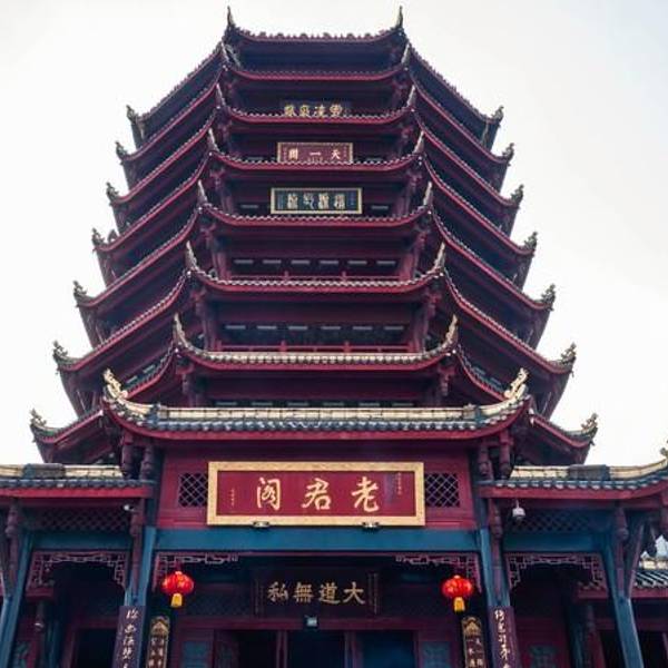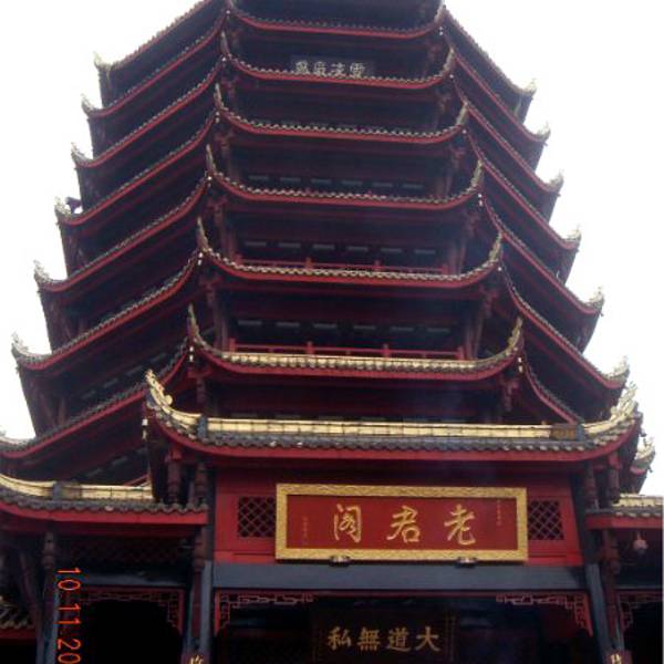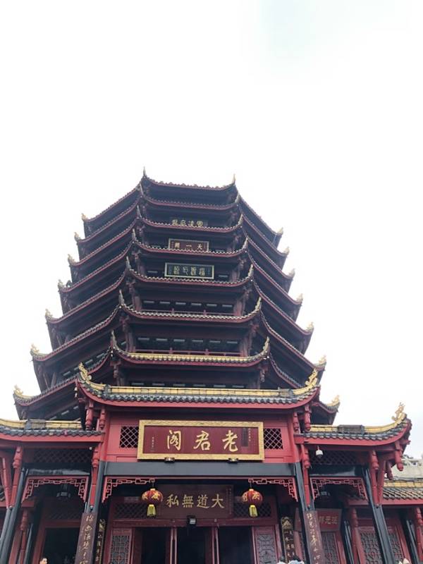 金骆驼 晴霁可眺览岷邛青峨远近数百里风光及天府平川数百里秀色,可谓集天下之壮观也。老君阁建筑群包括东华殿等处老君阁:老君阁位于青城第一峰绝顶(即彭祖峰顶,或称高台山、老霄顶),海拔高1260米,顶上原有呼应亭,取“登高一呼,众山皆应”之意。20世纪80年代末改亭建阁。2008年“5.12”特大地震毁坏后,今重建阁高33米...老君阁:老君阁位于青城第一峰绝顶(即彭祖峰顶,或称高台山、老霄顶),海拔高1260米,顶上原有呼应亭,取“登高一呼,众山皆应”之意。20世纪80年代末改亭建阁。2008年“5.12”特大地震毁坏后,今重建阁高33米,共九层,下方上圆,层有八角,象征天圆地方,太极八卦;外观呈塔形,尖顶,中堆三圆宝,寓意天地人三才。阁内中空,庄严耸立太上老君坐莲像,像高7.3米,连座台高10.37米。阁外露天台封基,用汉白玉石依势而建,海漫栏槛、曲折迁回盘旋而上至阁顶。晴霁可眺览岷邛青峨远近数百里风光及天府平川数百里秀色,可谓集天下之壮观也。
