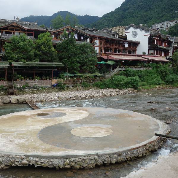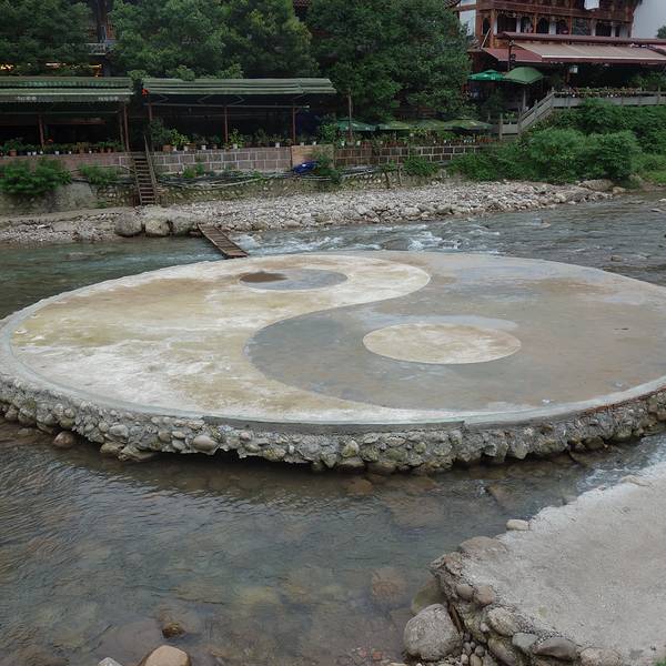 整个青城山都被浓雾、山泉、植物、建筑所包围,天然图画位于前山山门进入后约步行半小时就能够到达的景点。天然图画是一个古老建筑群,由木牌坊、厢房、正房组成一个围合的四合院,因为建在山上,属于传统的高台建筑;单独看这个建筑与其它古建筑没啥区别,但是,换个角度看这个建筑,从台阶下方或者有高大桫椤树一起来看这个古老的建筑群,才能体会到“天然图画”这个美名确实名副其实。