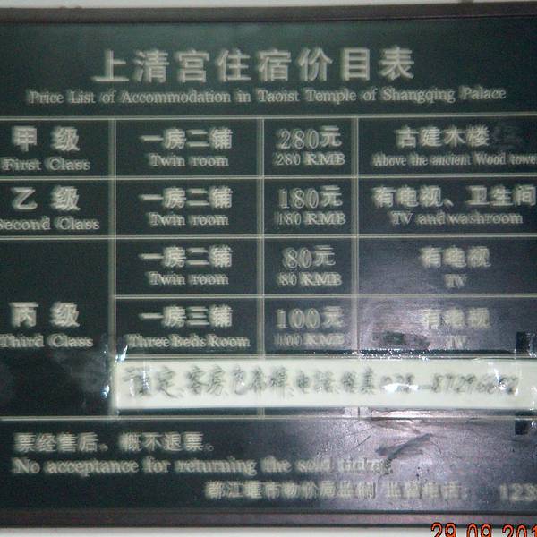 至于住宿嘛,我这次经过了详细了解,发现了四种住宿方式:一、青城山外有个小镇,镇上有各式旅社,旅社的老板负责将游客从青城山快铁站接送到旅社,也负责将游客从旅社接送到前山山门,免费哟,镇上配套建设有超市、银行等设施,相对方便;二、青城山前山山门前有个古镇,镇上有好些度假村和农家乐呢;三、可住宿在都江堰市区中,市区到青城山有公交101路或者的士,很方便;四、这个住宿点很独特,而且在前山景区内哟,就是在上清宫内,也是明码实价,价格在80~280元不等,价格由都江堰市物价局监制的,有兴趣的游客可以尝试一下独特的道家生活了。 展开