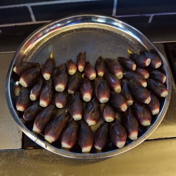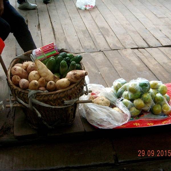 烫杂蔬则是在白果炖鸡吃到一半时将各色当地时令“叶子菜”加进去烫熟食用,其实烫杂蔬是可以单独制一碗“杂蔬汤”的,建议大家不要像我们这样烫在鸡汤里,这样多少会影响到鸡汤的口味~