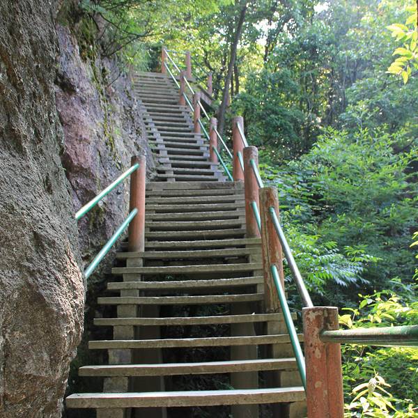 进入景区后,是道教的一个大的广场,从广场的左手边上山,旁边有卫生间。沿山路一直向上,刚好转一圈回来,回来的时候是广场的右手边。再快下山时,有一路口,通向少女峰。