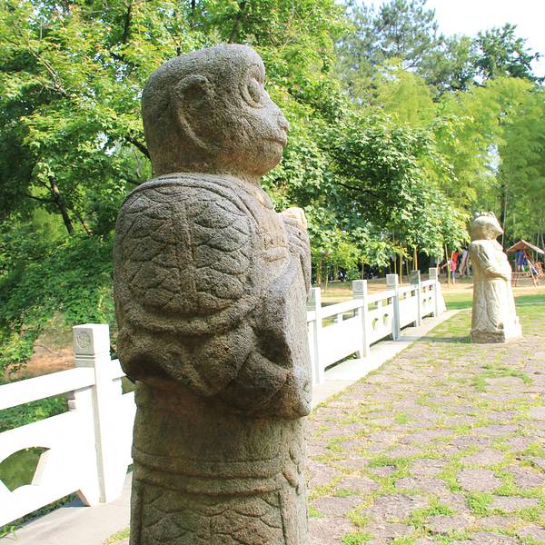 广场上立有十二生肖的雕像,边有一个小水塘,有秋千,不想爬山的话,在广场上玩一玩也可以的。
