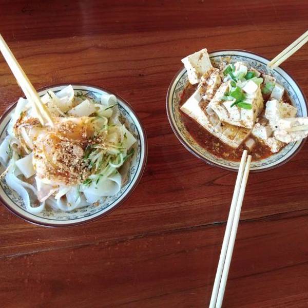 百草园的照片也传一些,现场手工制作的面皮和老豆腐,味道非常鲜美!