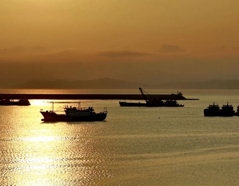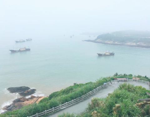 秋冬时节里,渔船依然航行在海面上,这个季节里的东海海鲜最是肥美,渔民们辛苦捕捞,我们也就有了最可口的美味。沿着山修建的公路被称为绿道,全长约4公里,主要就是沿海公路,可以欣赏到海边的风景,也方便上面各民宿的交通。